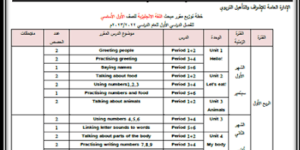 خطة اللغة الإنجليزية الفترة الأولي للصف الأول الفصل الأول اضغط هنا للتحميل http://up.smart-s.xyz/u9