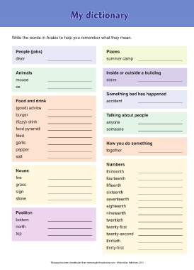 Write the words in Arabic to help you remember what they mean.